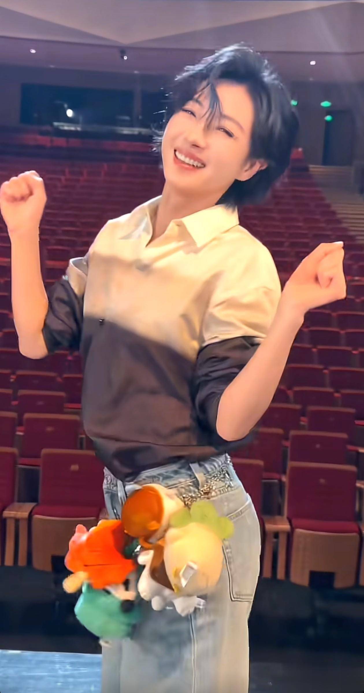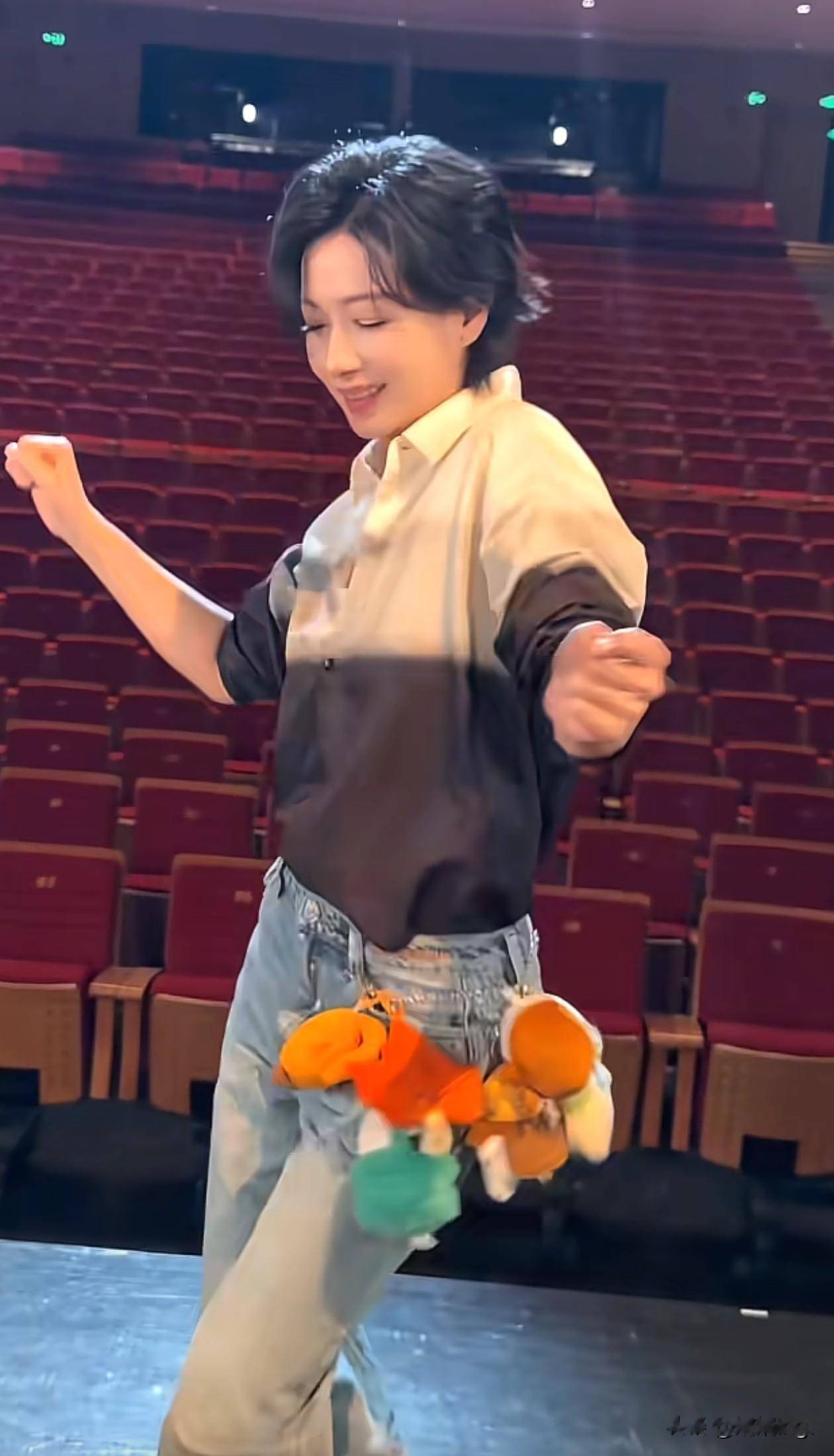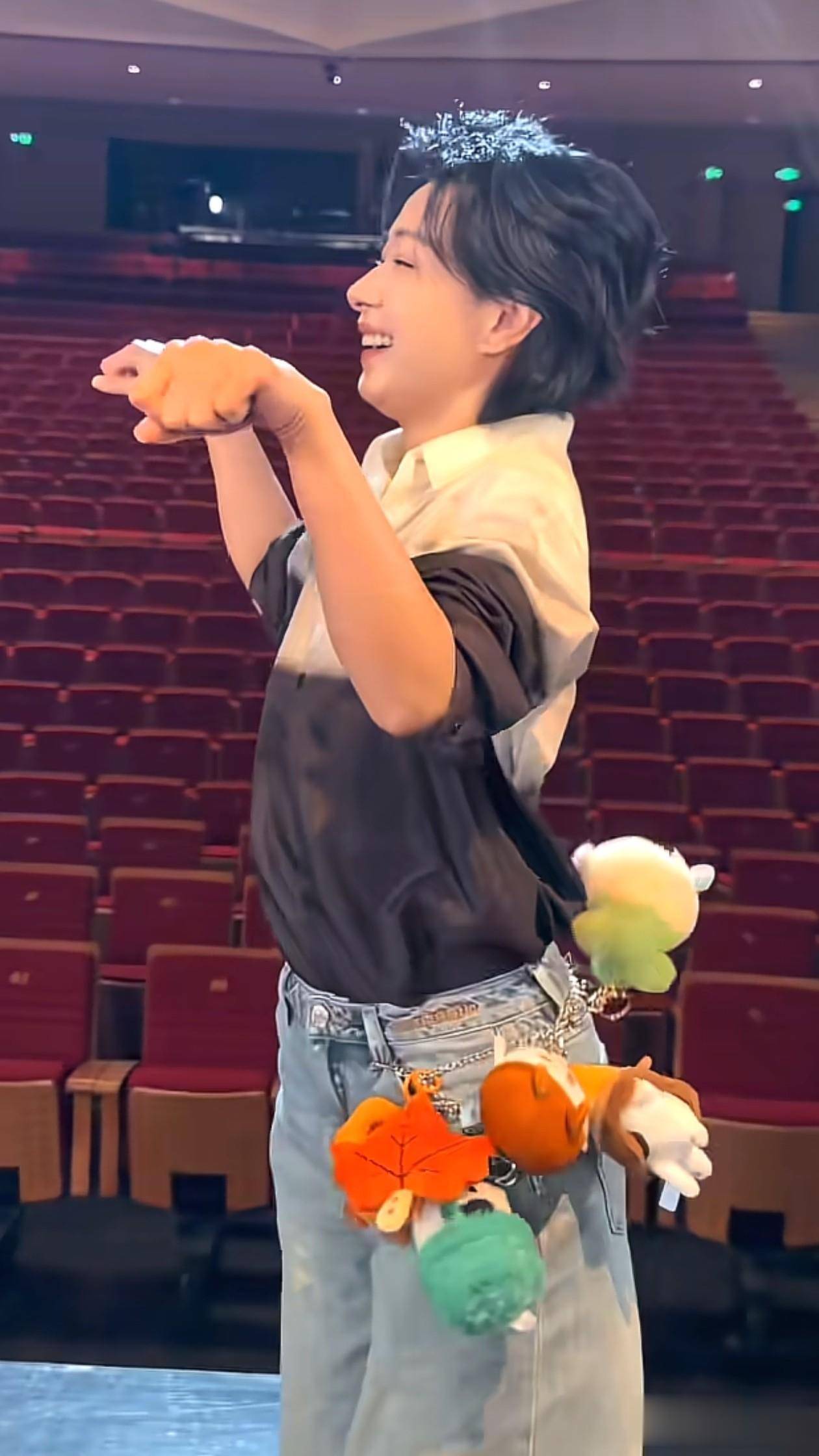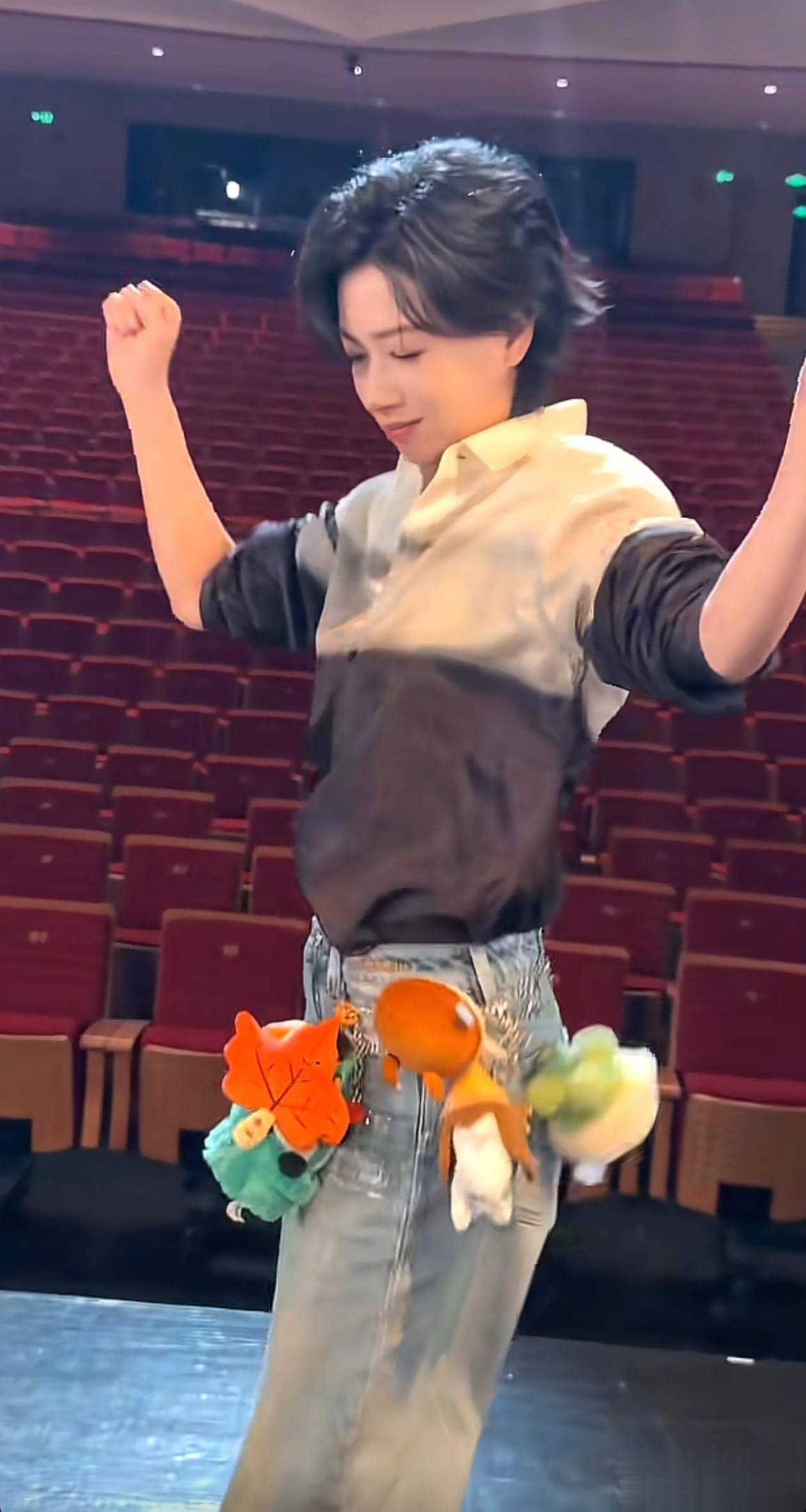 跳舞之际,小玩偶会随着动作上下摆动,为整体造型增添了不少活力。