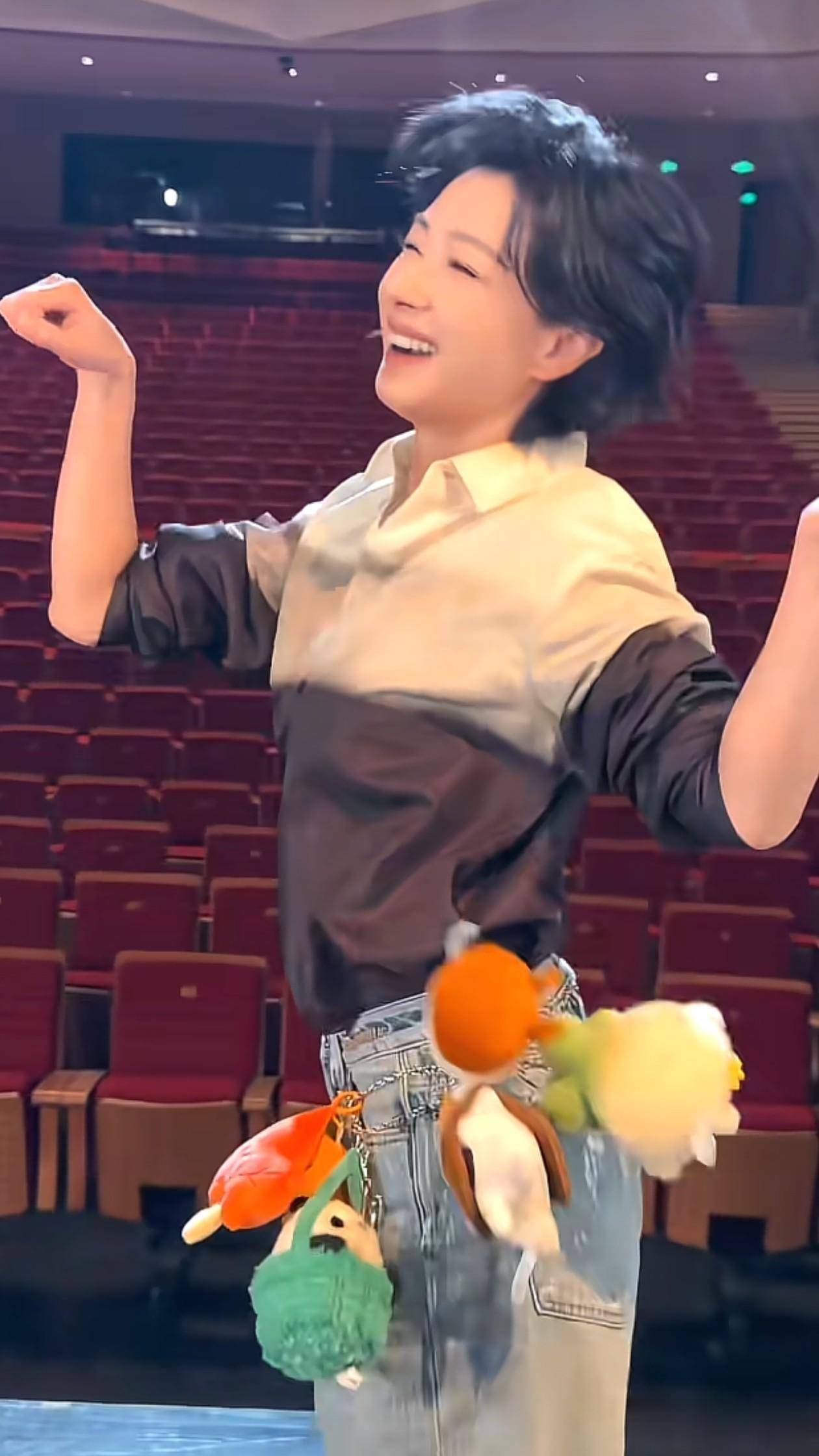 **跳舞时的万茜身着拼接衬衫,其颜色分层鲜明,两种颜色相互碰撞,瞬间绽放时尚光彩。**